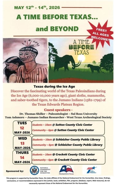 Updated Mar 6: Camp Meyers Spring, 2026 edition, The San Antonio to El Paso Overland Mail (1868 - 1886), Butterfield Trail Through The Concho Valley and West Texas, 3rd edition, The Jumano Pictographs at Paint Rock, Texas (41CC1), News & Events updated, Dec newsletter, Conquistador Pictograph Picture Story, The Jumano Pictograph Picture Story of ‘The Lady in Blue’ at Meyers Spring, Texas (pictographs), Independence Creek's Indian Hideout/Lookout Site (reports)